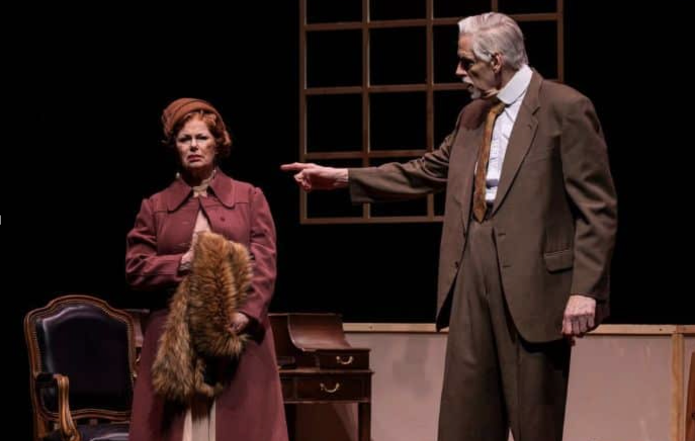 An efficient period-style design effectively transports us to the era, with character-defining costumes by Anthony Paul-Cavaretta, and wigs by Kevin S. Foster II, that indicate the situations and status of the figures, from the refined dress of the wealthy Littens to the uniforms of the Nazis and those of the prisoners of the concentration camps, all with a yellow Star of David to identify them as Jews. Alex Roe’s set of antique wooden furnishings, a rotating half-wall, a gramophone, and three pendant mullioned windows of black and white glass allows for easy scene shifts on the shallow stage, from Friedrich’s office to that of Barbasch and Hans, to the courtroom and bar, and the bleak cell at Dachau, with lighting by Alexander Bartenieff that suits the moods and blacks out with the episodes of violent torture (visible on the hands and face, and in the limping movement of Hans) and suicide (all sensitively handled by Lackey and Harrington, to go unseen, but imagined, by the audience). The play is enhanced with appropriate music and songs (sound by Abirami Senthil; music direction by Jessica Crandall) by Mozart, Brecht and Weill, and traditional Jewish and German folk anthems that express the thoughts and affiliations of the characters.